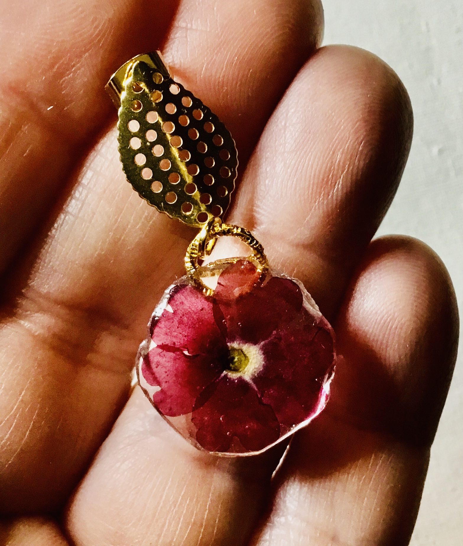 Sakura Alchemy is a piece of contemporary botanical jewelry that preserves real cherry blossom flowers inside luminous crystal-clear resin. Each blossom is carefully dried and arranged by hand, allowing its natural shape and soft pink tones to remain visible forever, suspended as if in liquid light.